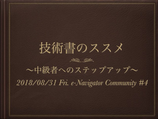 ٕज़ॻͷεεϝ ʙதڃऀͷεςοϓΞοϓʙ 2018/08/31 Fri. e-Navigator Community #4