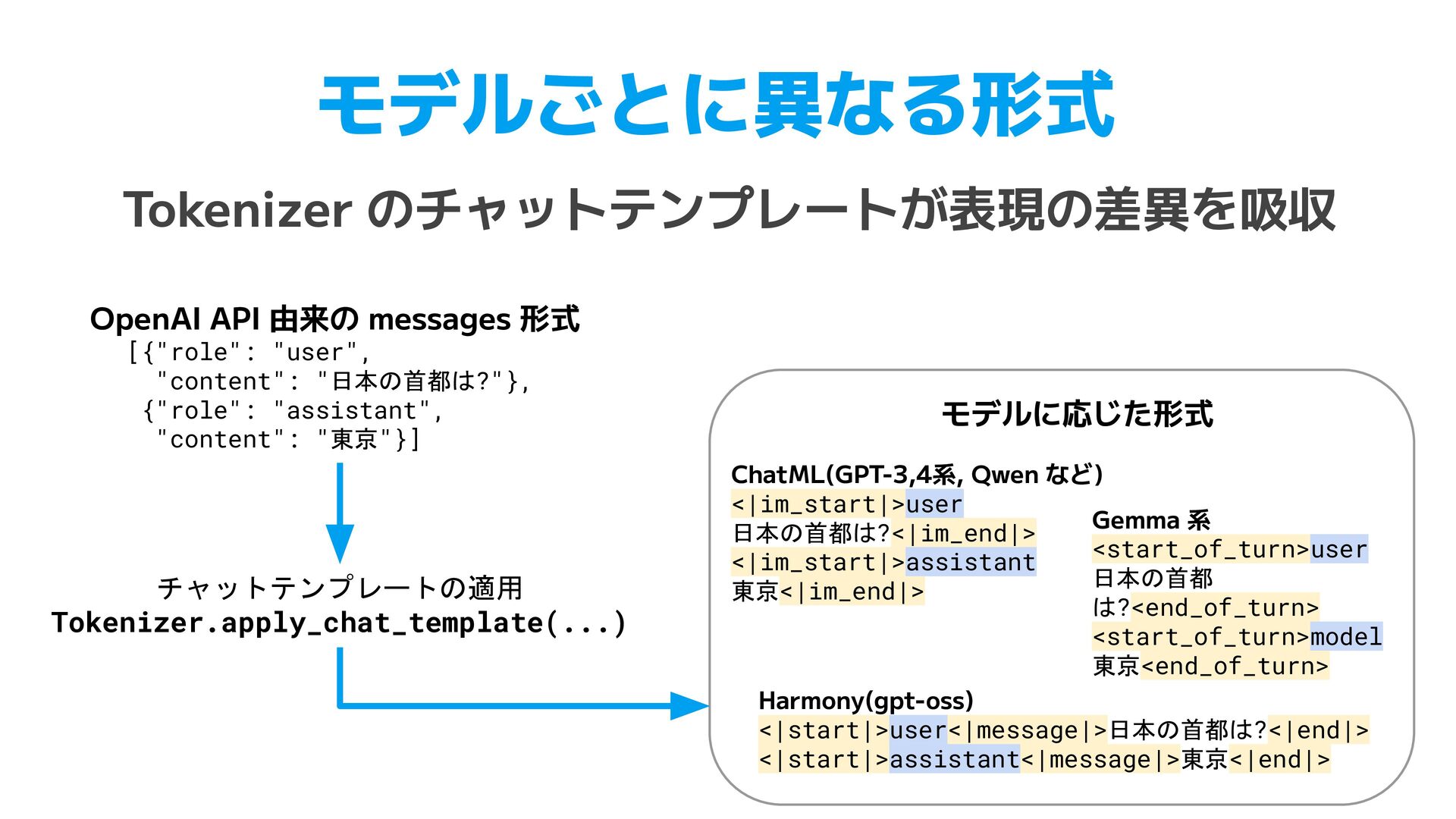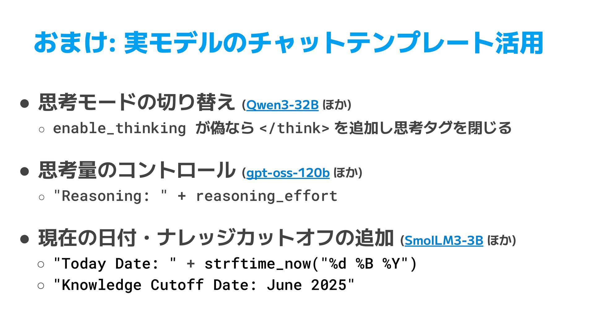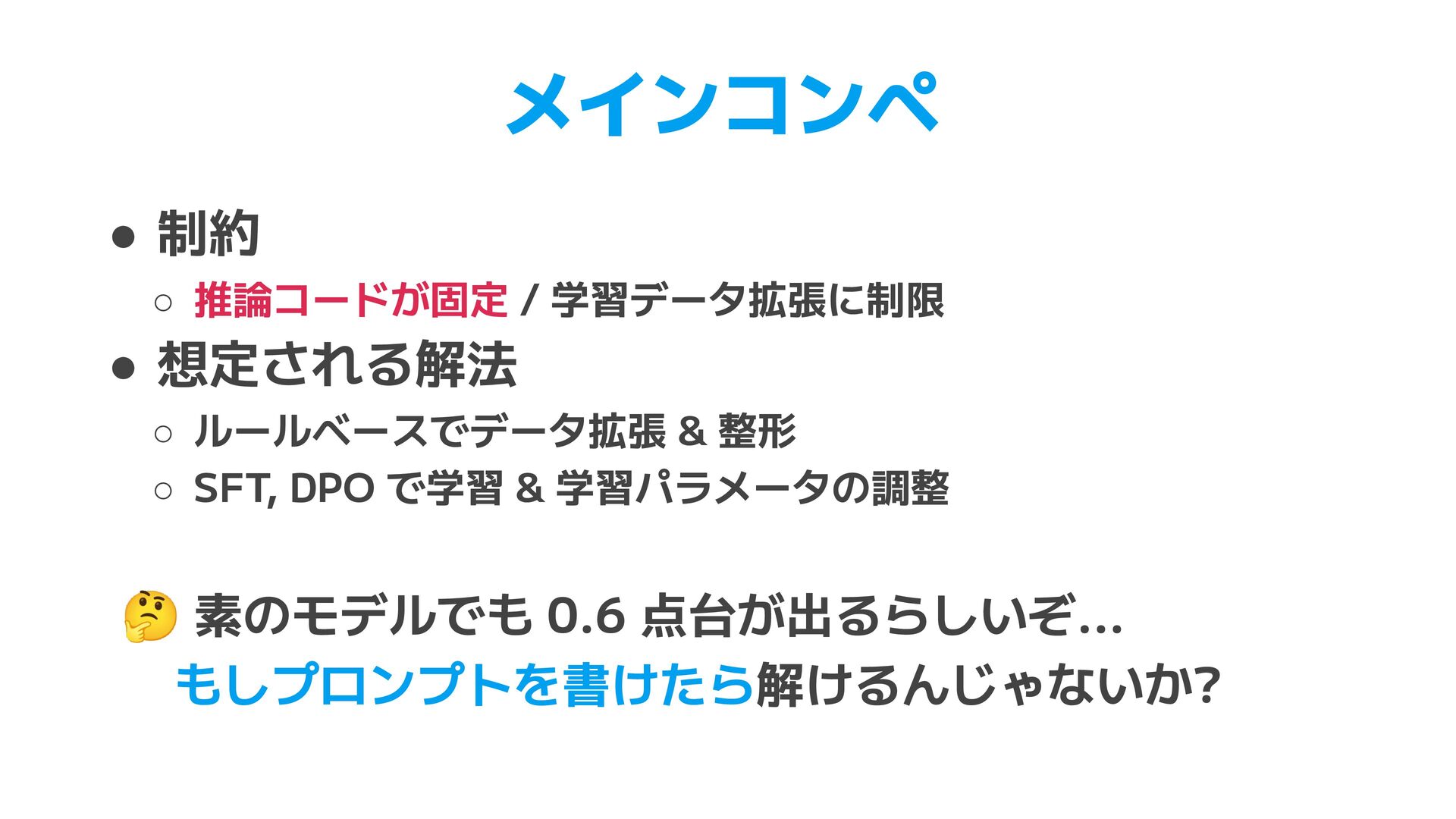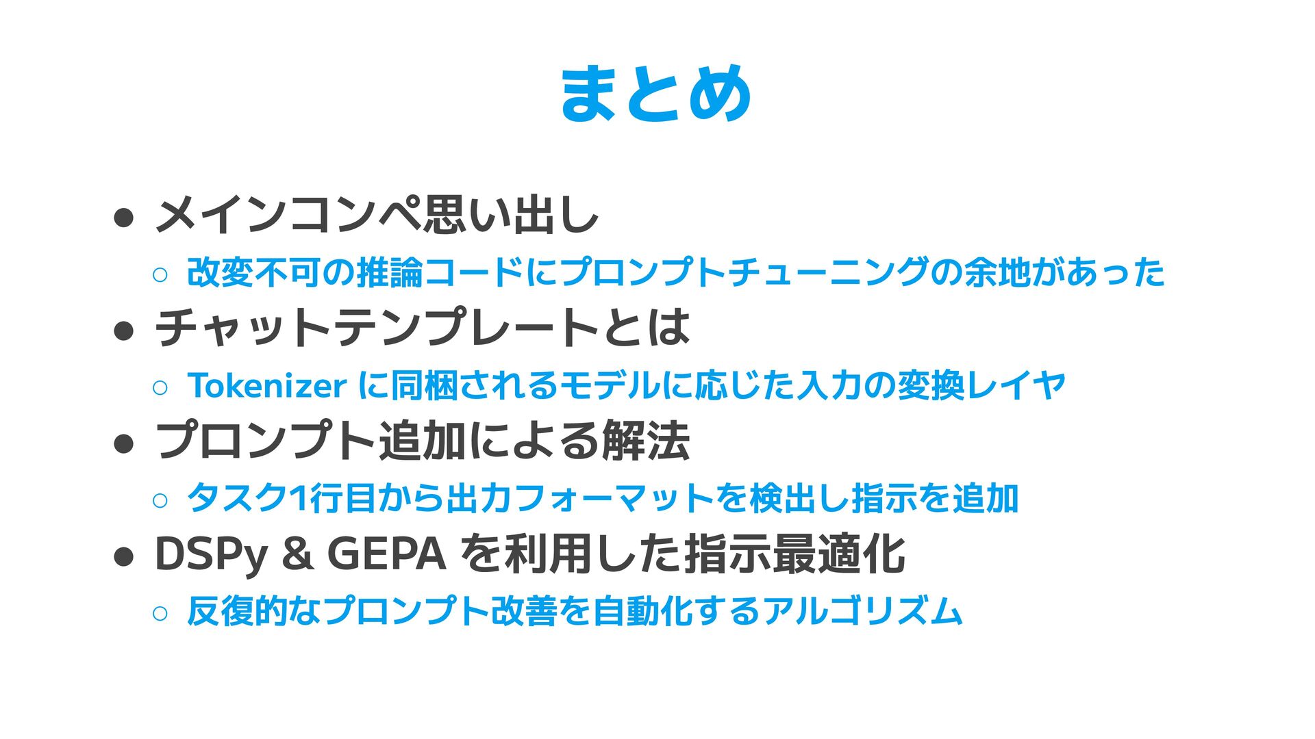 TOML. Use [table] for nested objects and [[array]] for arrays. Do not use inline tables. • XML (47行) ◦ JSON 入力時の root 要素の決定 ◦ パス構造の一致ルール, データ型(ISO 8601, UUID)の保持 • YAML (83行) ◦ XML, CSV, JSON からの個別の変換ルール ▪ XML 繰り返し要素のタグ省略、CSV列名のドットはネスト ◦ 学習データの一部が例として指示に含まれることも見られた