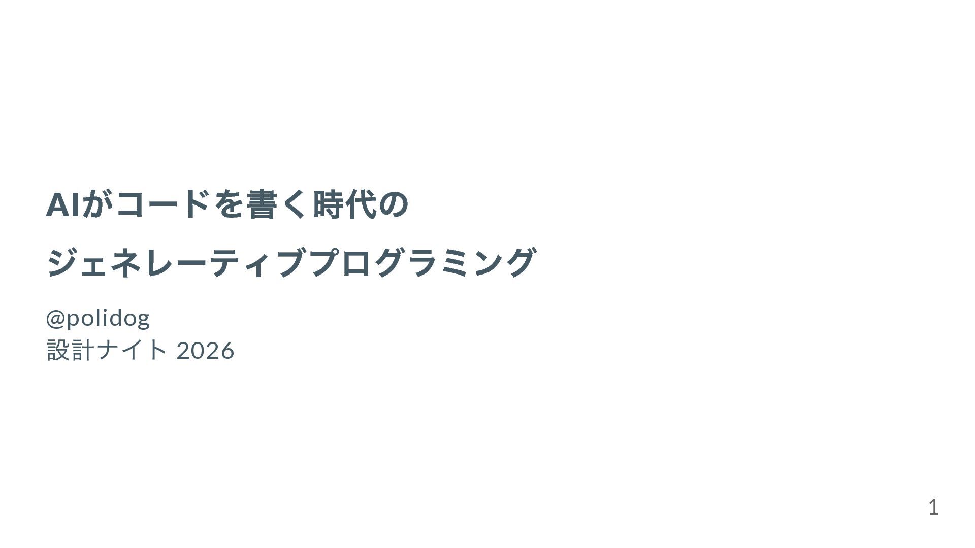 AI がコードを書く時代の ジェネレーティブプログラミング @polidog 設計ナイト 2026 1