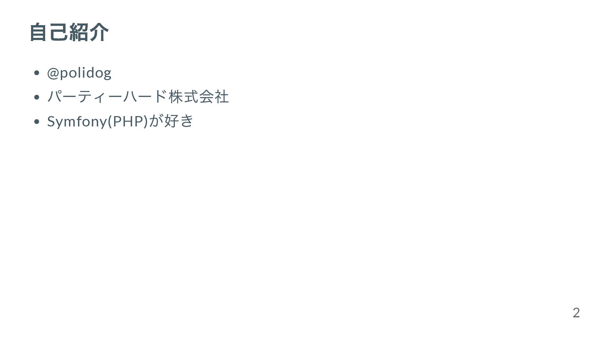 自己紹介 @polidog パーティーハード株式会社 Symfony(PHP) が好き 2