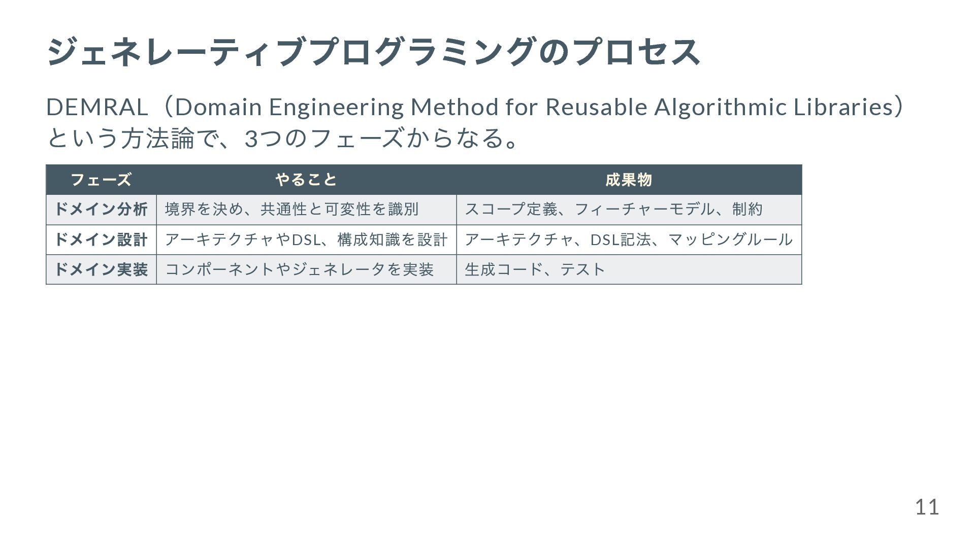ジェネレーティブプログラミングのプロセス DEMRAL (Domain Engineering Method for Reusable Algorithmic Libraries )