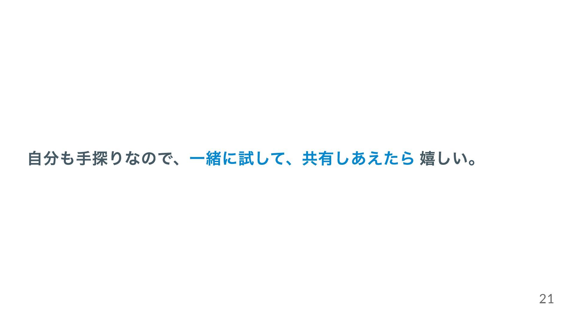自分も手探りなので、一緒に試して、共有しあえたら 嬉しい。 21