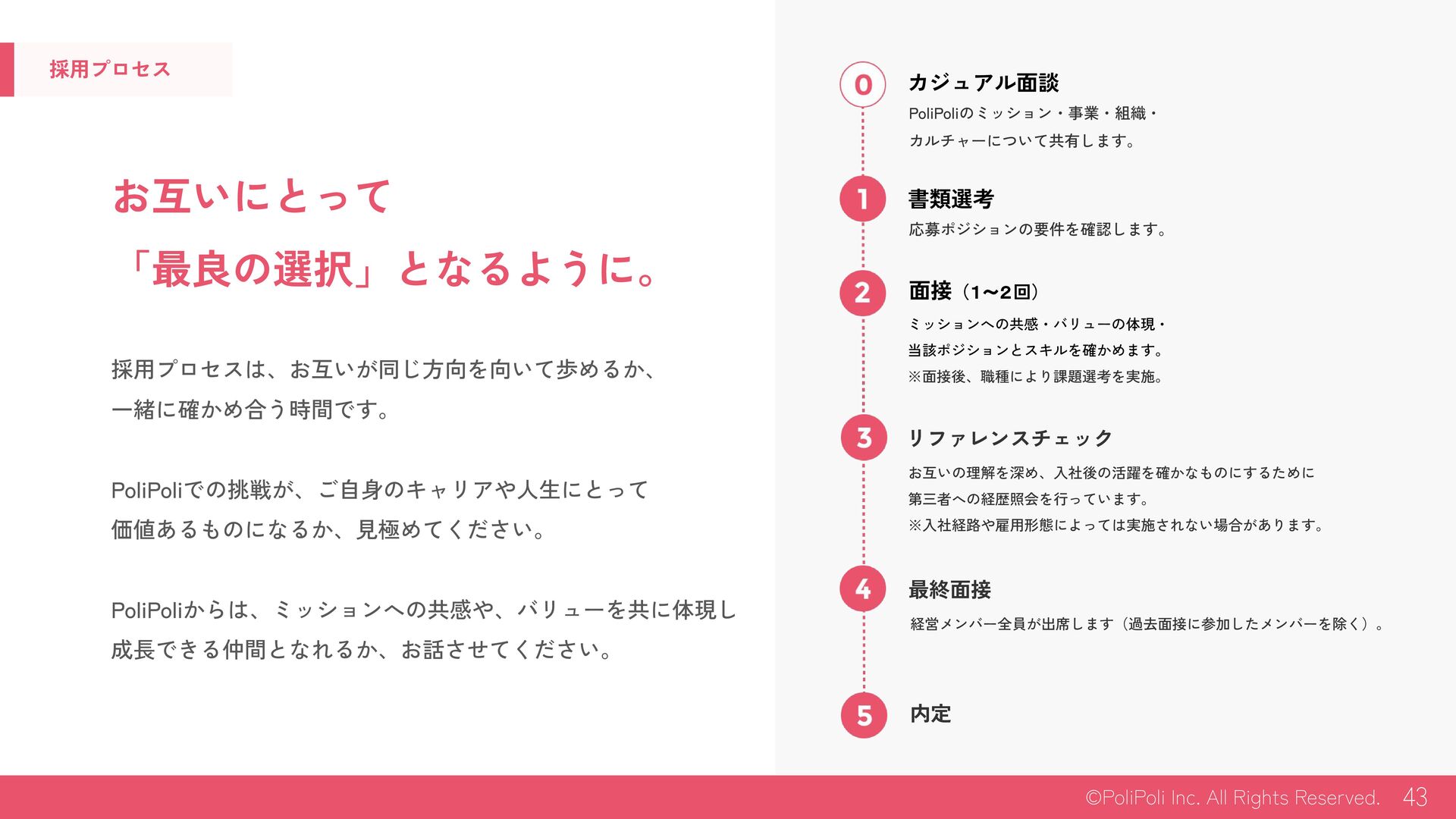 光 PR 大手自動車メーカーでPR、エンターテイメント業 界団体でルールメイキング、政策提言に携わる。 #業界団体 横戸 健介 PoliPoli Enterprise 浜松市役所でデジタル活用や官民共創による持続可能 なまちづくりに向け、戦略策定、政策実装を牽引。 #自治体 瀧本 陽一 官民共創事業部 東京都庁産業振興部局などで政策実装。スタート アップへ転じ、渉外・カスタマーサクセスを経験。 #自治体 #スタートアップ 田川 耕治 官民共創事業部 独学でプログラミングを学び、新規プロダクトの 立ち上げなどを経験。 #エンジニア 高野 裕樹 エンジニア 経済産業省でデジタル政策、地方人材政策を担当。 ビズリーチでSaaSビジネスの事業企画を経験。 #省庁 #メガベンチャー 小倉 政貴 PoliPoli Enterprise 国際人権NGO、日本有数の子ども関連NPOで政府 や自治体への政策提言に携わる。 #NPO 幡谷 拓弥 Policy Fund ユーザベースで「NewsPicks」広告事業部を立ち 上げ、ブランディング・マーケティングを推進。 #メディア #スタートアップ 西村 脩平 PoliPoli Enterprise メンバーによる発信はこちら 秋 圭史 政府渉外 https://note.com/polipoli_info 大学4年時にインターンとしてPoliPoliに参画。政治学 を専攻し、現在、大学院博士課程にも在学中。 #スタートアップ #新卒 35 メンバー (一部)