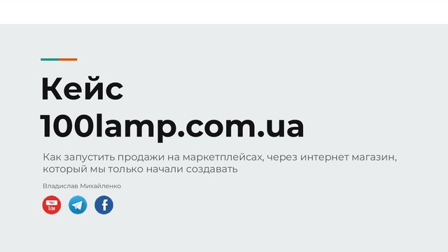 момент написания кейса мы только добавляем товары, и осуществляем настройку cms Цели: - Запланировано 10 000 sku - Сейчас на сайте 100lamp.com.ua и на портале розетка 1770 товаров