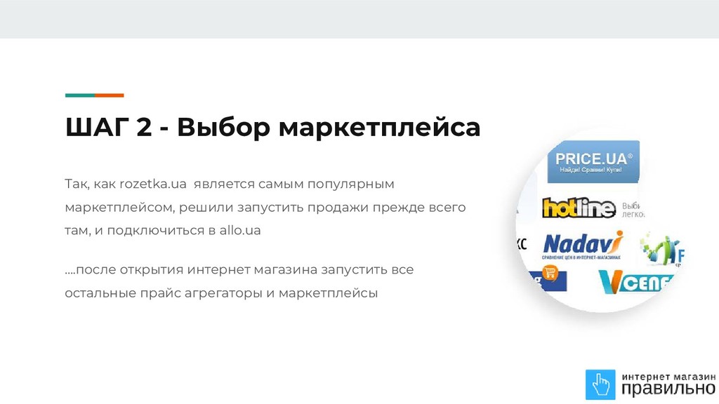 популярным маркетплейсом, решили запустить продажи прежде всего там, и подключиться в allo.ua ….после открытия интернет магазина запустить все остальные прайс агрегаторы и маркетплейсы