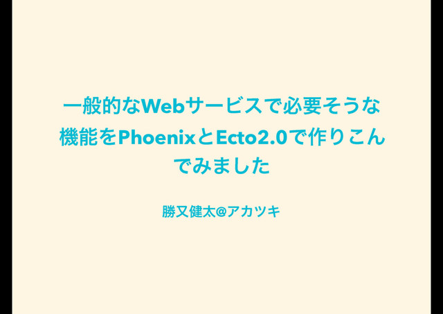 (Github/Facebook/Twitter) • internationalization/localization/globalization (gettext/translator) • REST API (maru) • master/slave access to database (read_repos) • transaction (Ecto.Multi) • many to many relationship (Ecto 2.0) • pagination (scrivener) • using memcached as session storage (plug_session_memcached) • image file upload to S3 (arc) • send email via SES (mailman) • classification value (ex_enum) • service layer • database concurrent test • metaprogramming