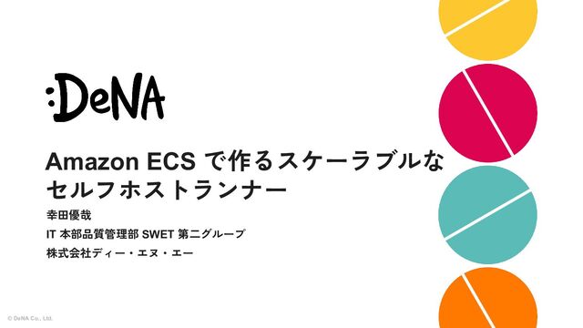 © DeNA Co., Ltd. 1 Amazon ECS で作るスケーラブルな セルフホストランナー 幸田優哉