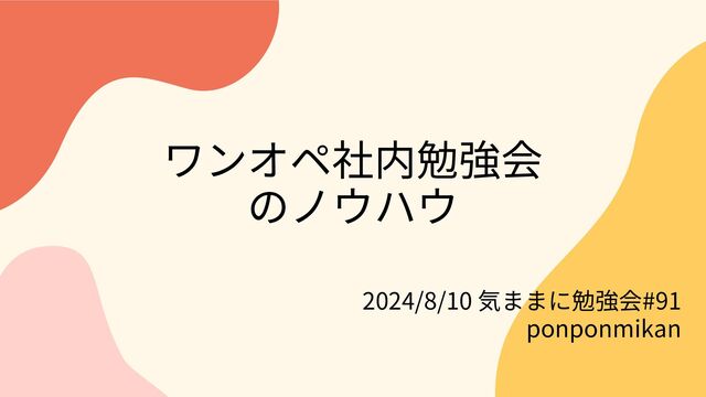 ワンオペ社内勉強会 のノウハウ 2024/8/10 気ままに勉強会#91 ponponmikan