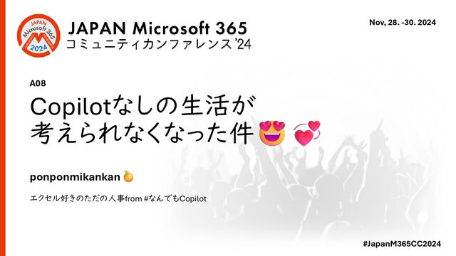 #JapanM365CC2024 Nov, 28. -30. 2024 Copilotなしの生活が 考えられなくなった件 ponponmikankan エクセル好きのただの人事from #なんでもCopilot
