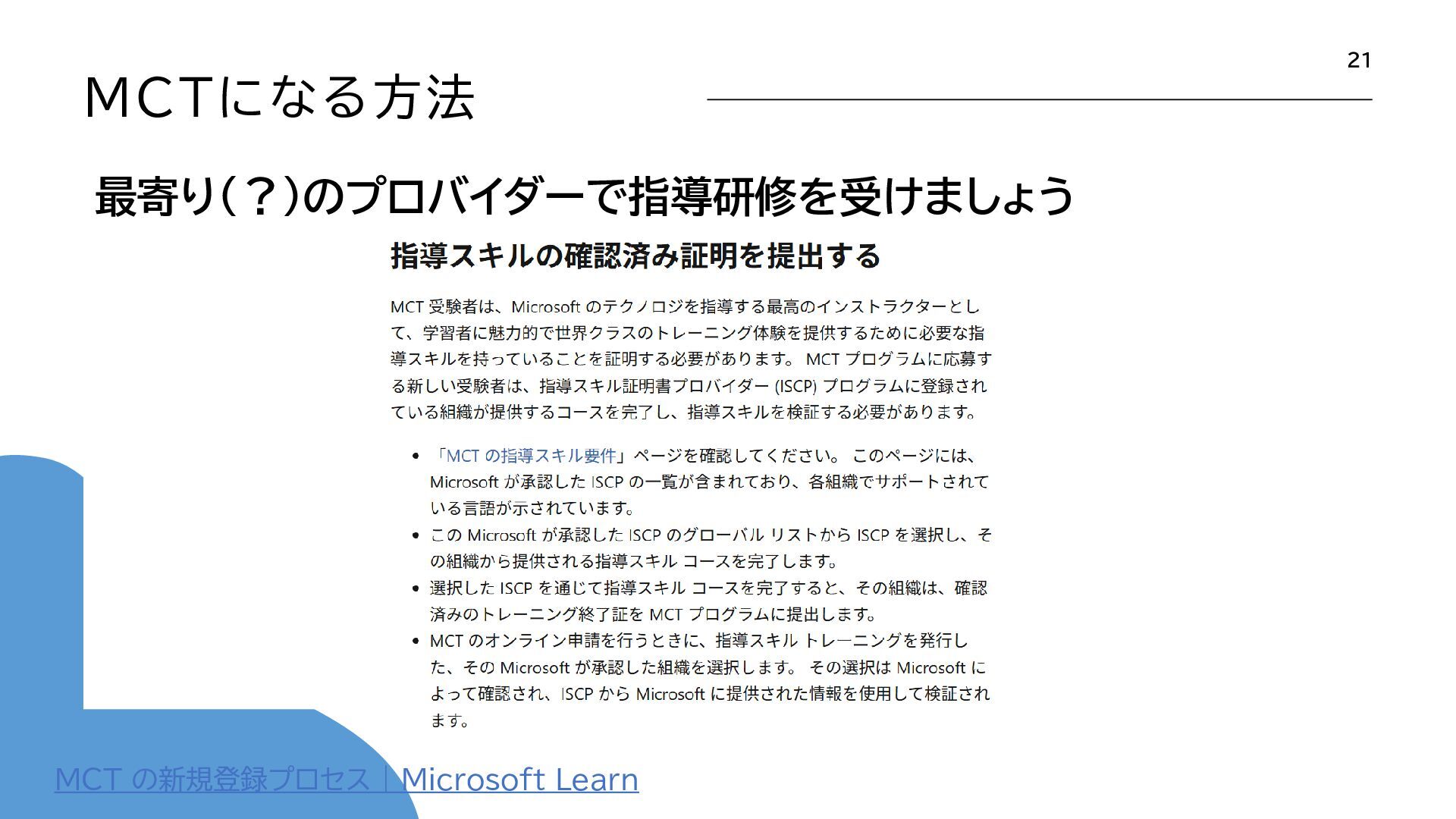 MCTになる方法 21 最寄り(?)のプロバイダーで指導研修を受けましょう MCT の新規登録プロセス | Microsoft Learn