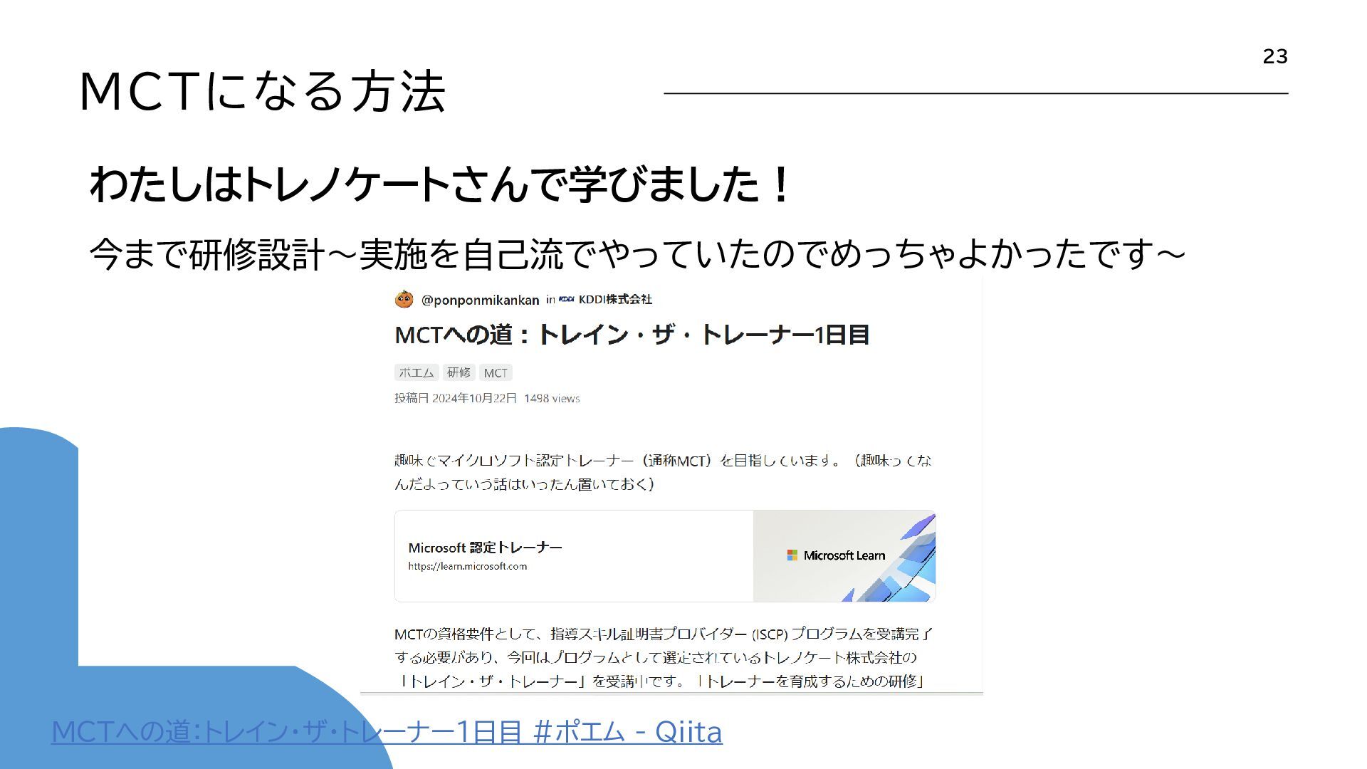 MCTになる方法 23 わたしはトレノケートさんで学びました! 今まで研修設計~実施を自己流でやっていたのでめっちゃよかったです~ MCTへの道:トレイン・ザ・トレーナー1日目 #ポエム - Qiita