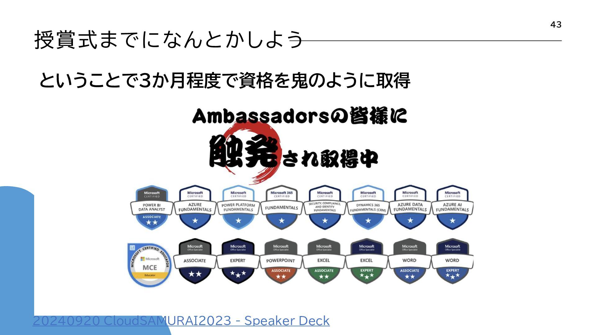ということで3か月程度で資格を鬼のように取得 授賞式までになんとかしよう 43 20240920_CloudSAMURAI2023 - Speaker Deck
