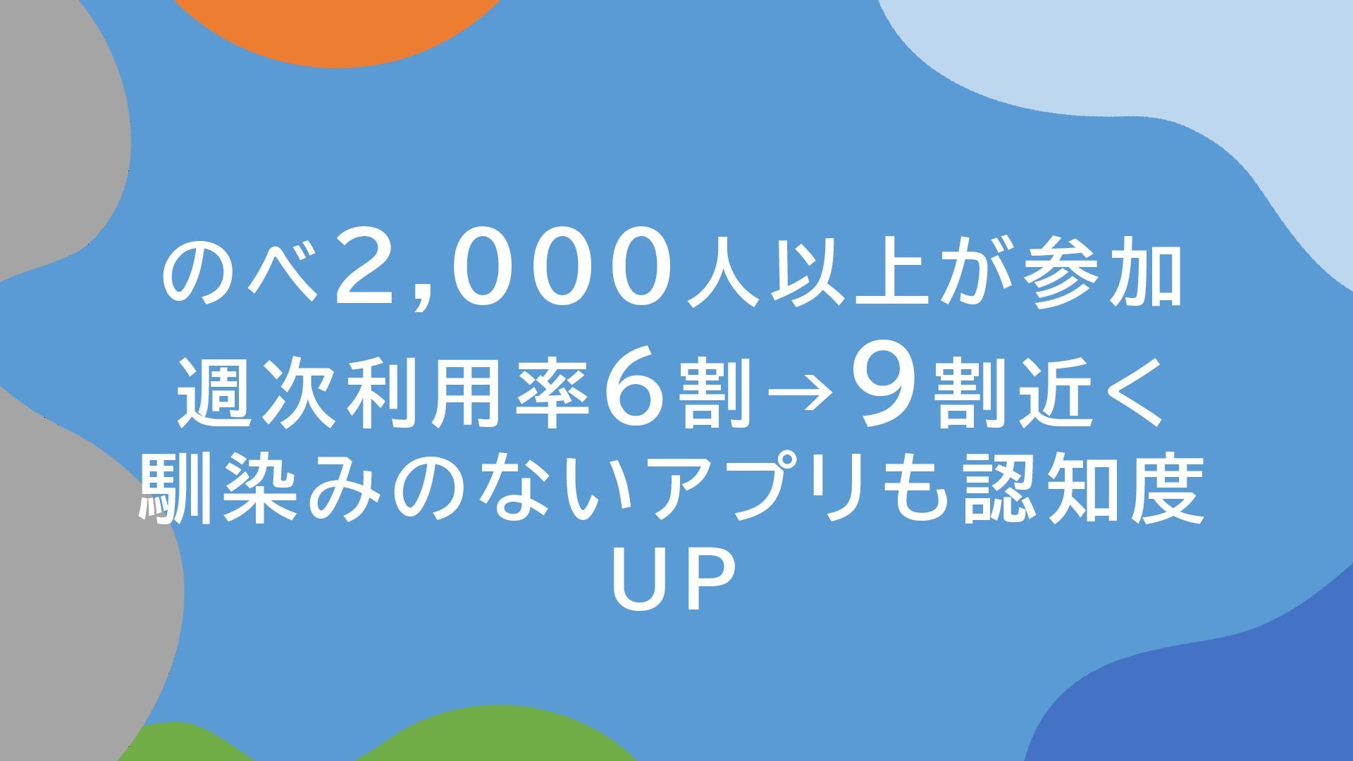 のべ2,000人以上が参加 週次利用率6割→9割近く 馴染みのないアプリも認知度 UP
