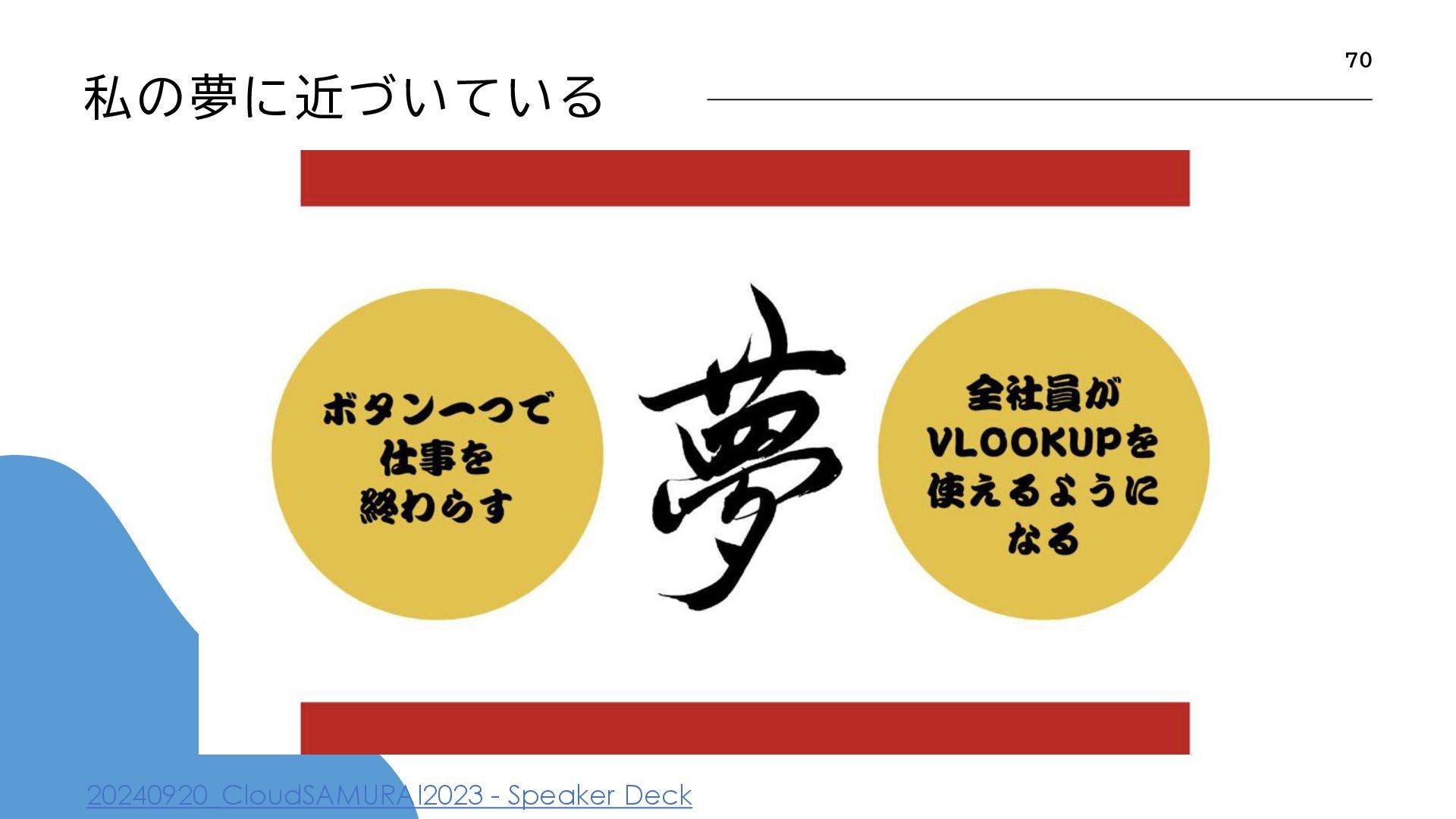 私の夢に近づいている 70 20240920_CloudSAMURAI2023 - Speaker Deck