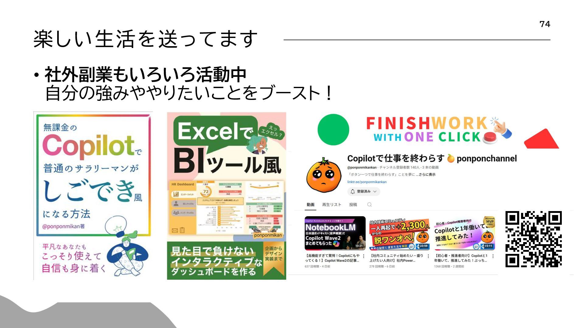 • 社外副業もいろいろ活動中 自分の強みややりたいことをブースト! 楽しい生活を送ってます 74