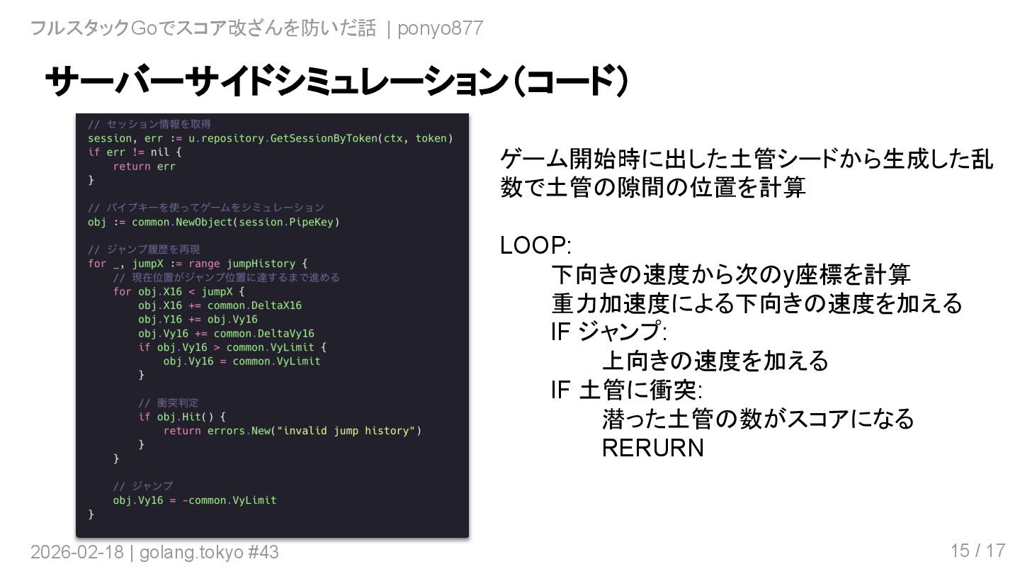 フルスタックGoでスコア改ざんを防いだ話 | ponyo877 2026-02-18 | golang.tokyo #43 15 / 17