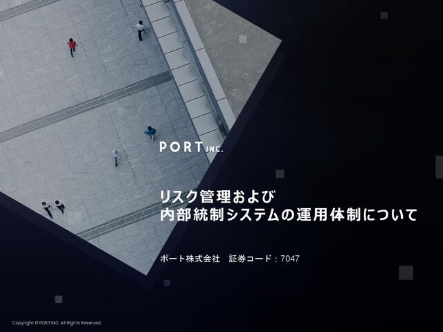 INC. All Rights Reserved. 6 ポートグループ リスクマネジメントガイドライン グループ会社役員行動規範 グループ内部通報システム 定期的なグループ会社役員研修を実施。各種システムの実効性を高める。 当社は、経営戦略の要諦であるグループ経営の重要性を認識し、グループ全体のリスク管理体制を確立するため、ポート グループリスクマネジメントガイドライン、グループ会社役員行動規範、およびグループ内部通報システムを基盤として、グルー プ全体のリスクを網羅的に管理を実施。これらの取り組みを通じて、グループ全体のリスク認識を統一し、より効果的なリスク 管理体制を構築していく。 ・リスク管理における基本方針と 評価基準の明確化 ・年次でのリスクアセスメント実施と 主要リスクの特定 ・役員のリスク意識と倫理観の向上 ・適切なリスクテイクと コンプライアンス遵守の徹底 ・不正やコンプライアンス違反の早期 発見・是正 ・通報者の保護と信頼性の高い 通報窓口の運用 ・自浄作用の活性化と 透明性向上 ③グループリスクマネジメント体制