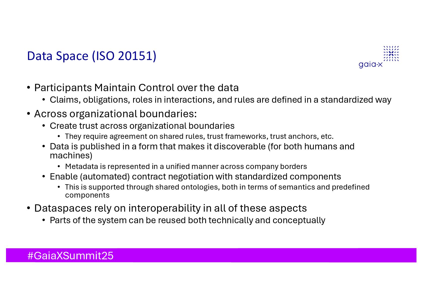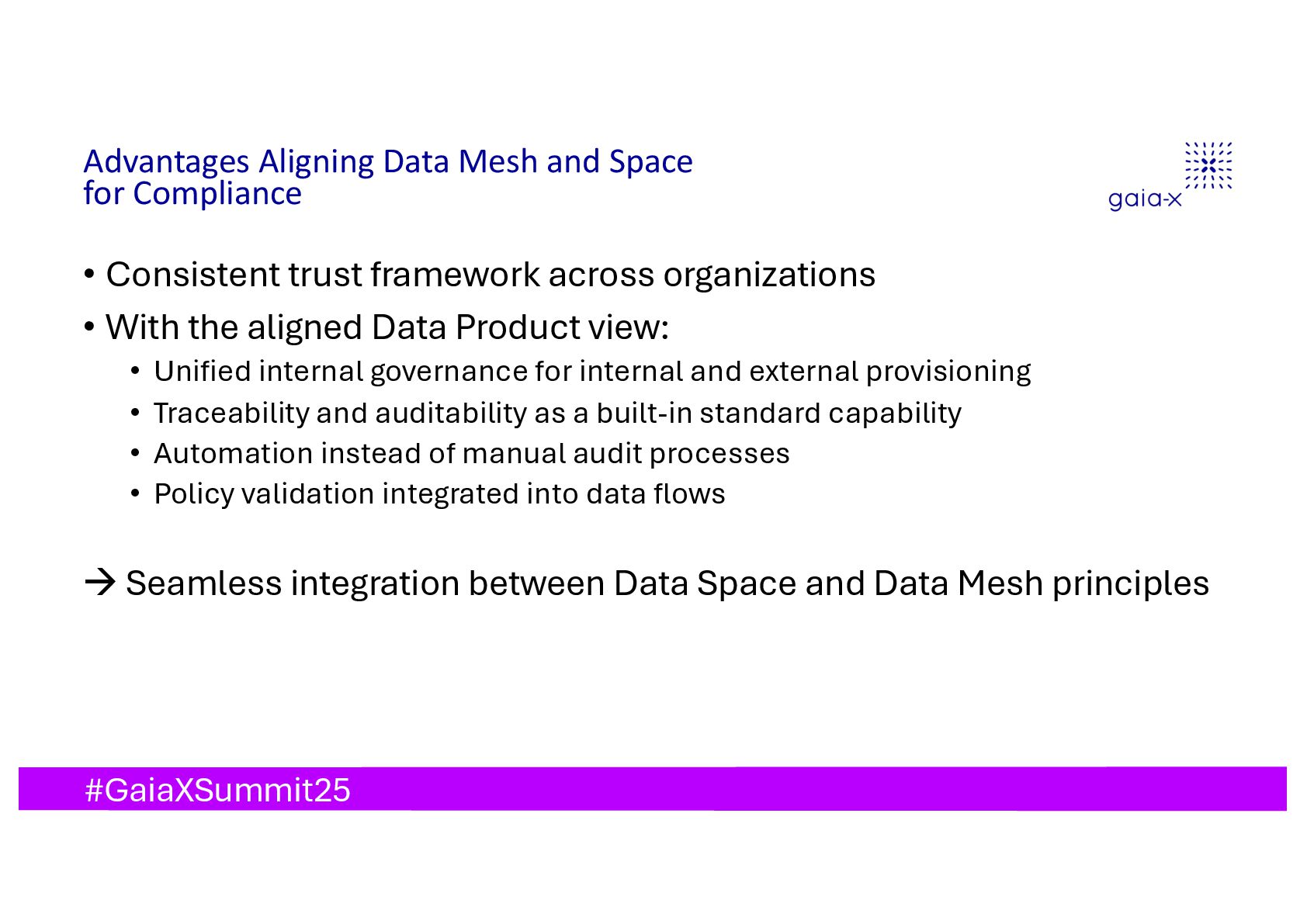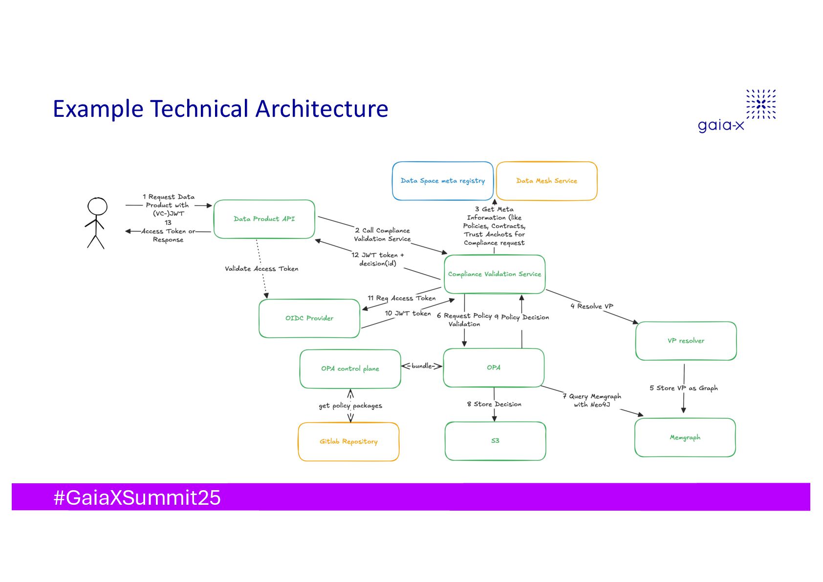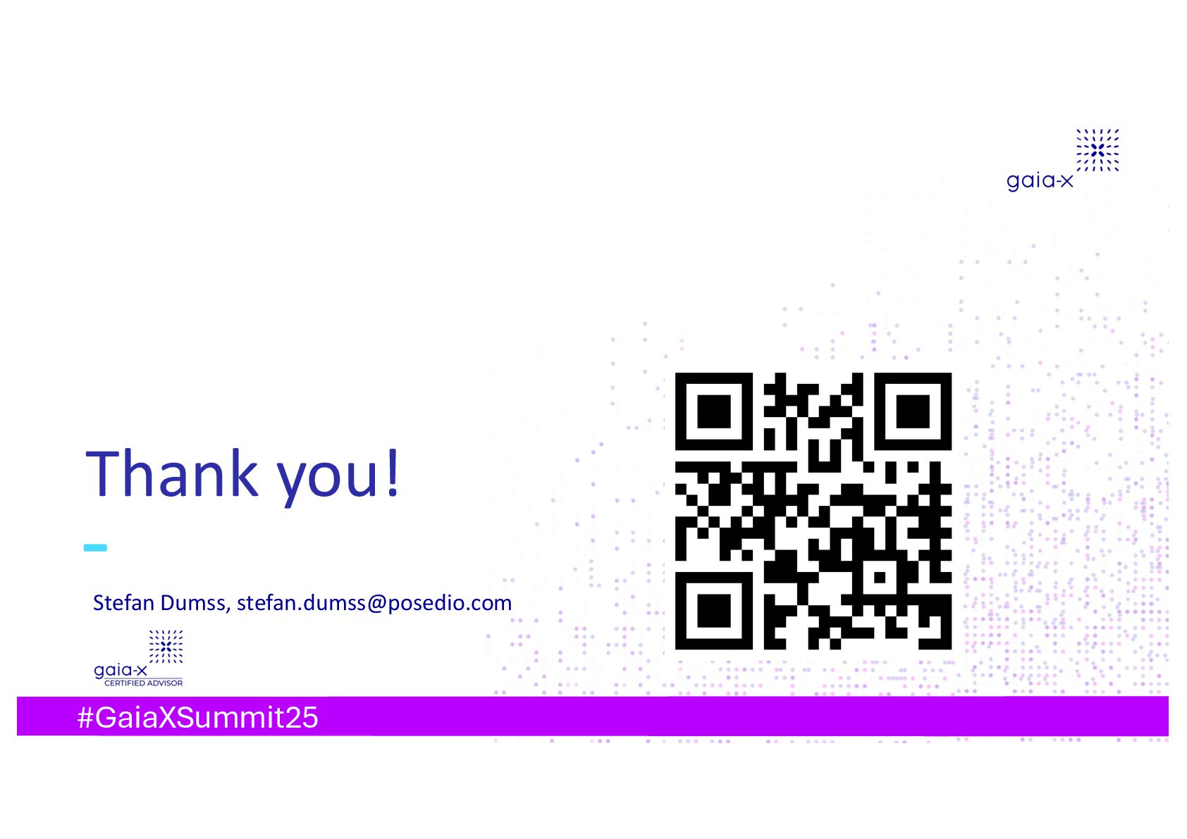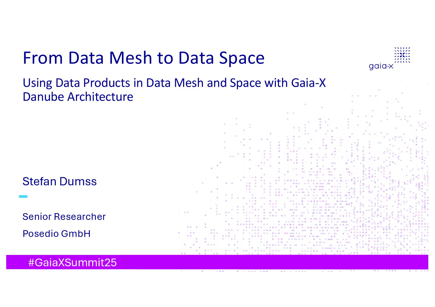In this session, Stefan will demonstrate at the Gaia-X Summit how the new Gaia-X Danube architecture can be integrated into Data Space and Data Mesh concepts at the data product level. The focus will be on the technical architecture for policy and compliance creation and validation, as well as the advantages of building these capabilities from a data product perspective.