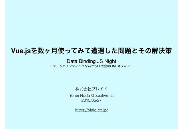 Vue.jsΛϲ݄ͬͯΈͯૺ۰ͨ͠ͱͦͷղܾࡦ Data Binding JS Night ʙσʔλόΠϯσΟϯάͳΜͰLTେձ@LINEΦϑΟεʙ גࣜձࣾϓϨΠυ Yohei Noda @positiveflat