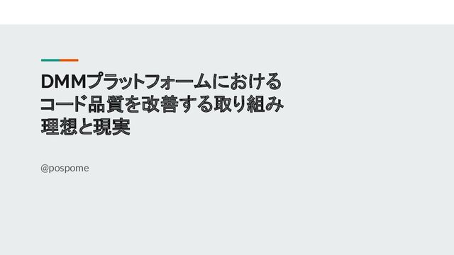DMMプラットフォームにおける コード品質を改善する取り組み 理想と現実 @pospome