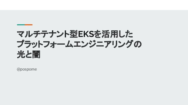 マルチテナント型EKSを活用した プラットフォームエンジニアリングの 光と闇 @pospome