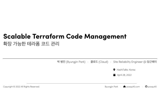 회사의 성장에 따라 관리하는 인프라의 규모도 함께 성장합니다. 이에 따라 테라폼의 코드는 점점 거대해지고 복잡해집니다. 어떻게 하면 테라폼 코드를 유연하게 확장시켜 나가며 관리할 수 있을지에 대한 노하우를 공유합니다.