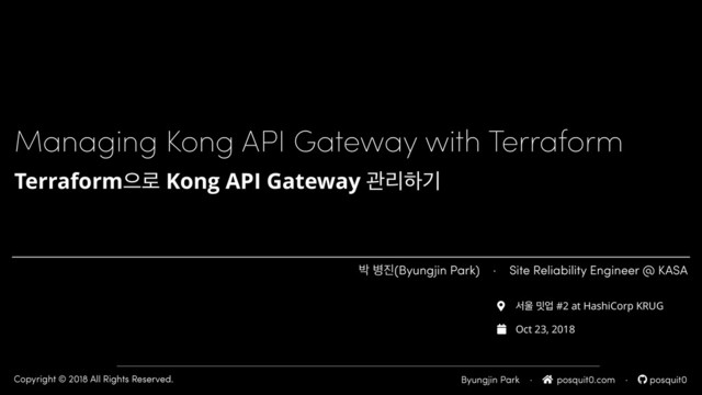 Kong은 Nginx와 Lua를 기반으로 하는 오픈소스 API Gateway입니다. 본 세션에서는 API Gateway가 무엇인지, Kong을 선택한 이유와 사용 방법, Terraform을 이용하여 Kong을 관리한 경험을 공유합니다.