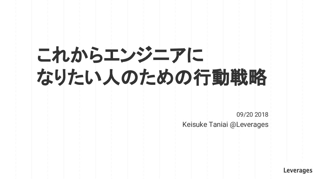 これからエンジニアに なりたい人のための行動戦略 Keisuke Taniai @Leverages 09/20 2018