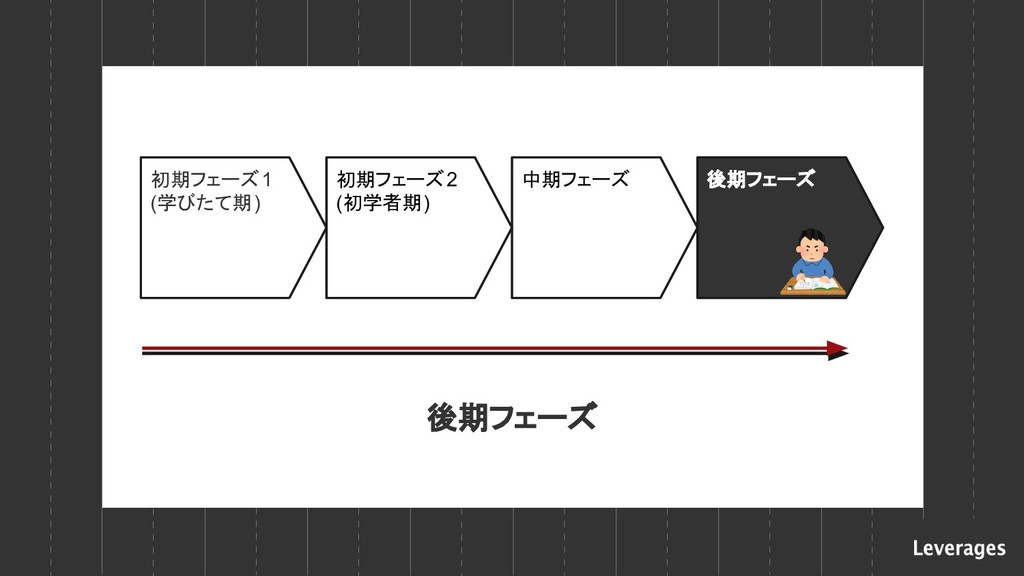 初期フェーズ1 (学びたて期) 初期フェーズ2 (初学者期) 中期フェーズ 後期フェーズ 後期フェーズ