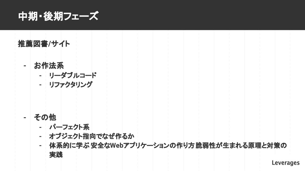 中期・後期フェーズ 推薦図書/サイト - お作法系 - リーダブルコード - リファクタリング - その他