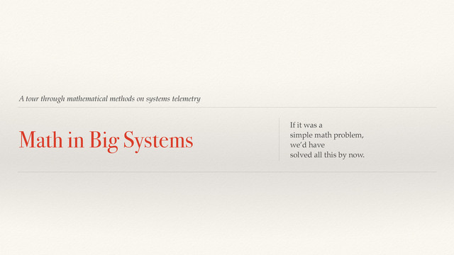 the type of signal? How do we manage off-line modeling? How do we manage online fault detection? How do we reconcile so users don’t hate us? How we we solve this in a big-data context?