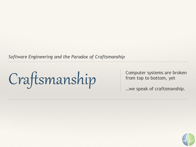 1. Software Engineering and the Paradox of Craftsmanship Craſtsmanship Computer systems