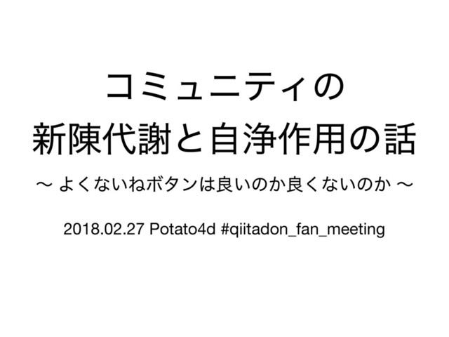 ίϛϡχςΟͷ ৽ँͱࣗড়࡞༻ͷ ʙ Α͘ͳ͍ͶϘλϯྑ͍ͷ͔ྑ͘ͳ͍ͷ͔ ʙ 2018.02.27 Potato4d #qiitadon_fan_meeting