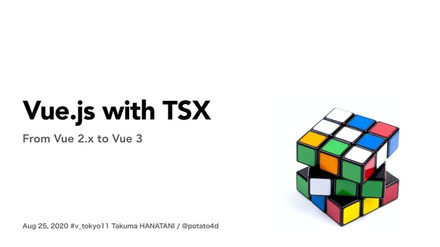 LLC. CEO ## OSS Activity - @nuxtjs/dayjs creator and maintainer - Vue.js Japanese Official Document Co-maintainer ## Coding Style - User Interface First - Nuxt.js with TSX and Provider/Injection Takuma HANATANI @potato4d
