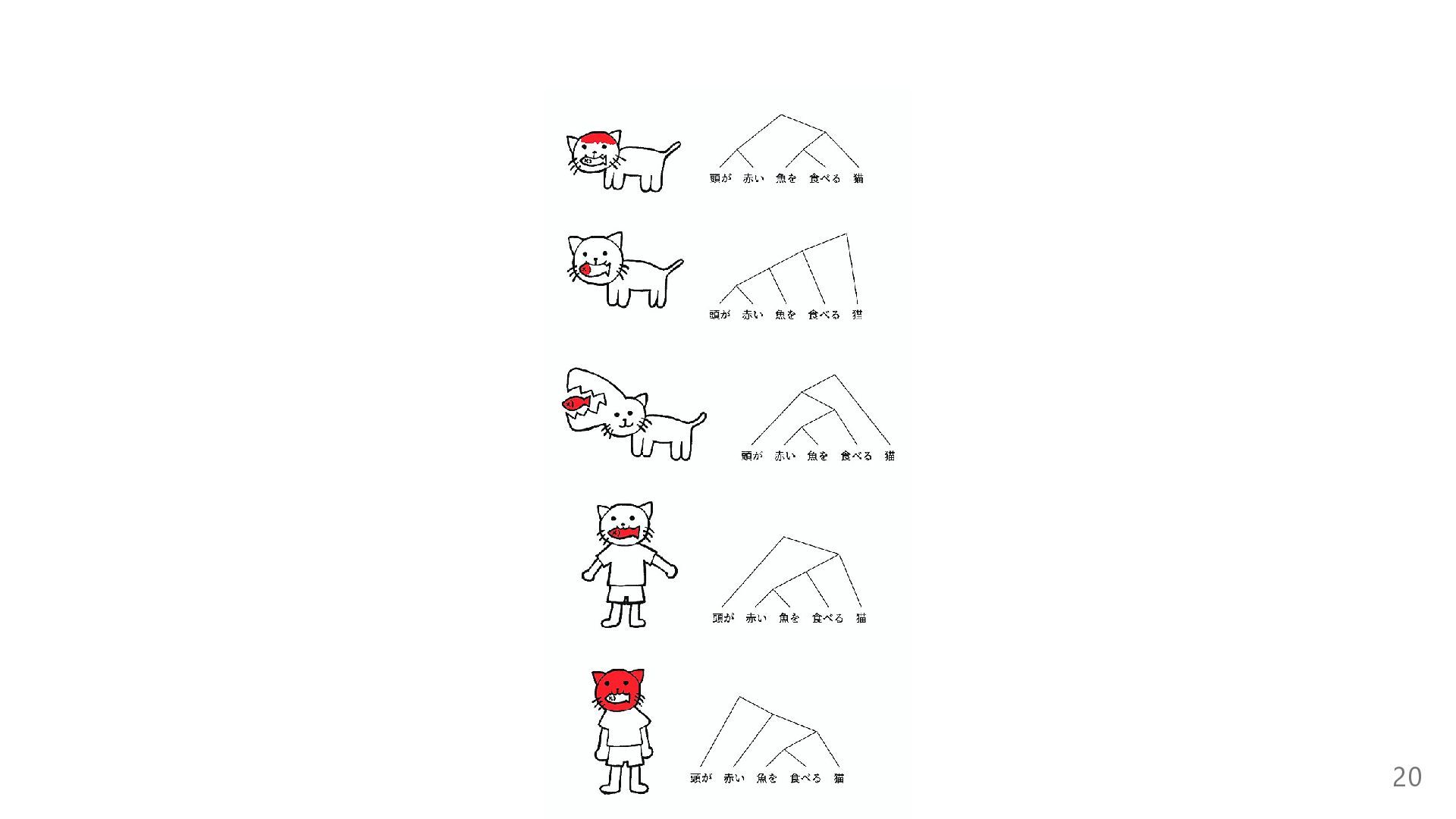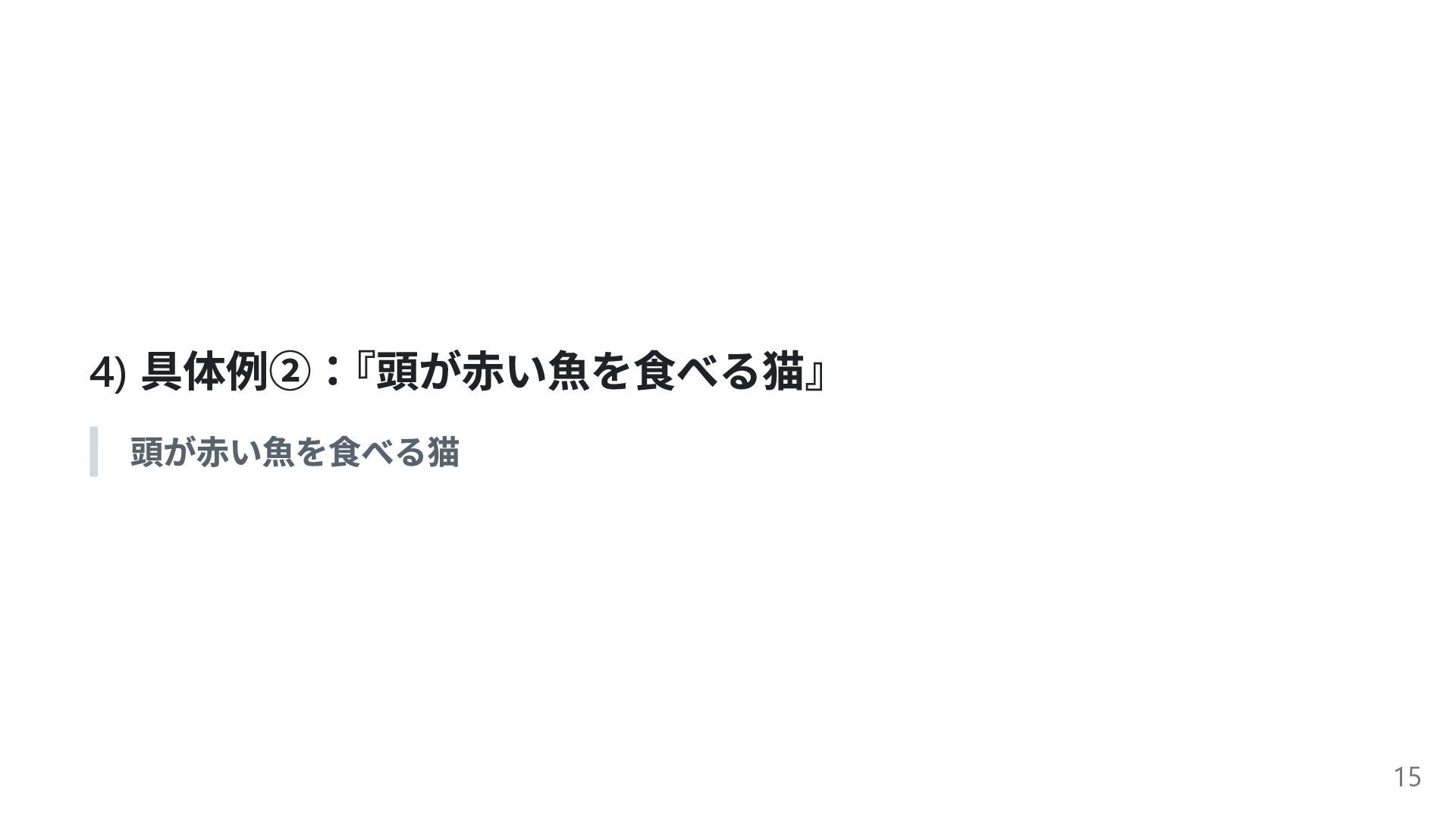 4) 具体例②: 『頭が赤い魚を食べる猫』 頭が赤い魚を食べる猫 15