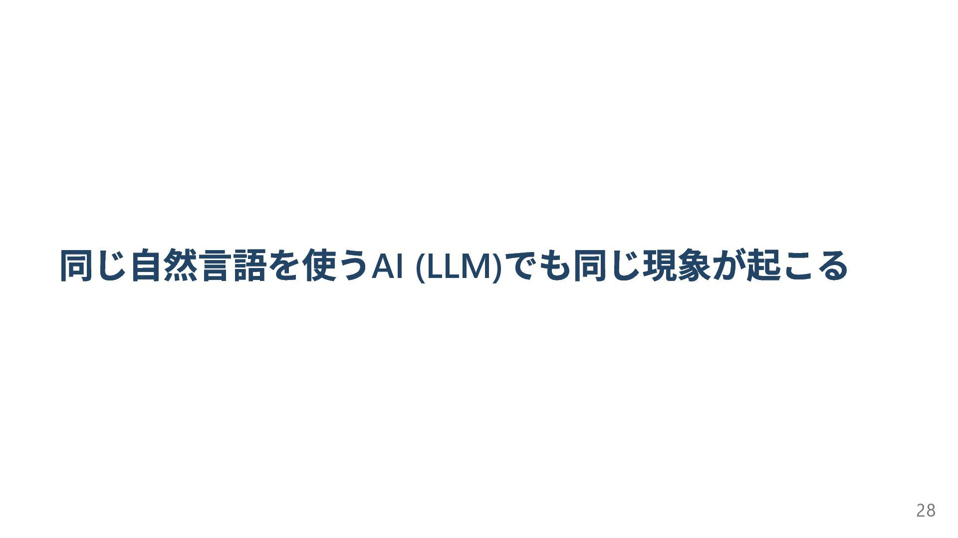同じ自然言語を使うAI (LLM) でも同じ現象が起こる 28
