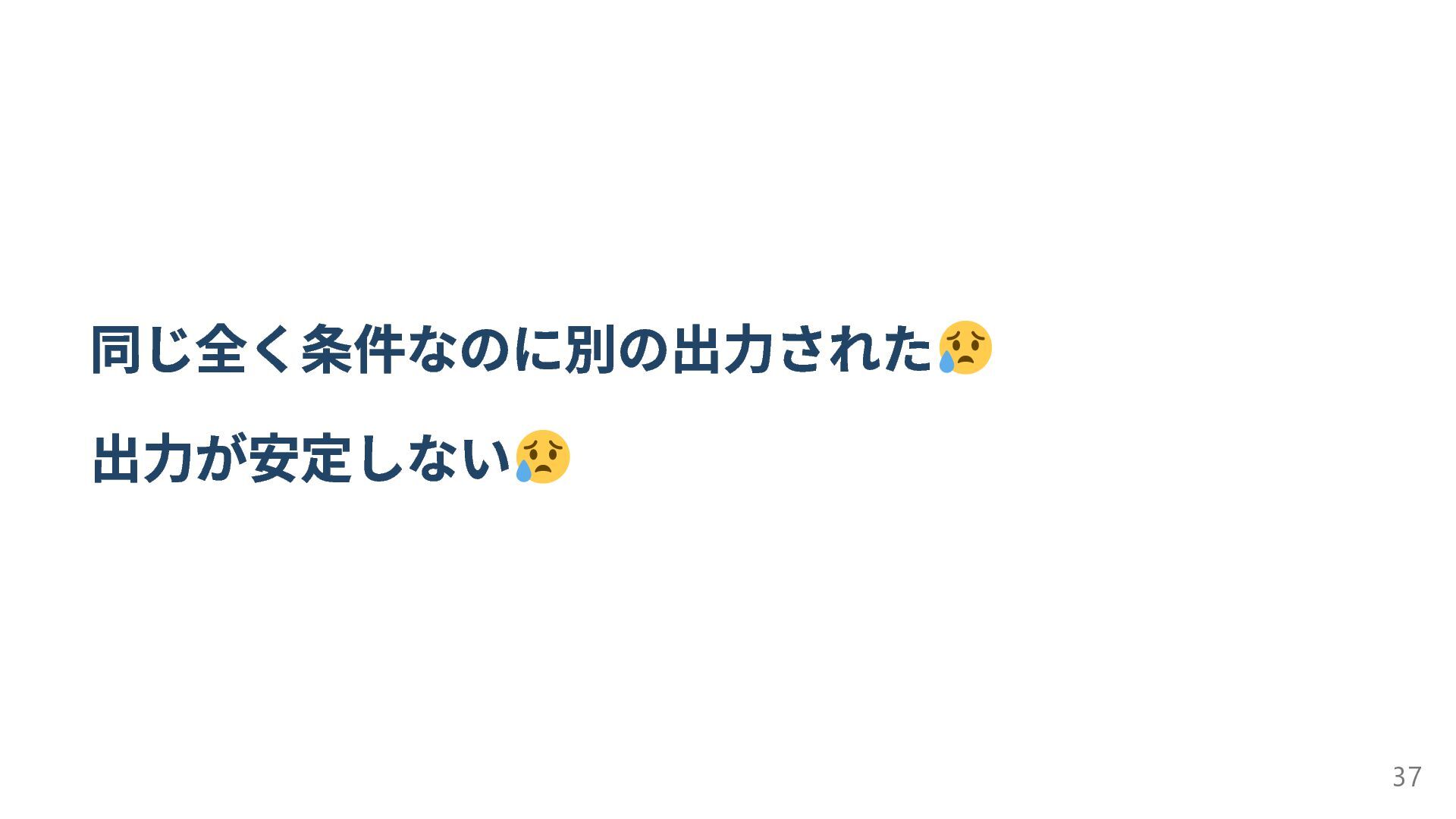 同じ全く条件なのに別の出力された 出力が安定しない 37
