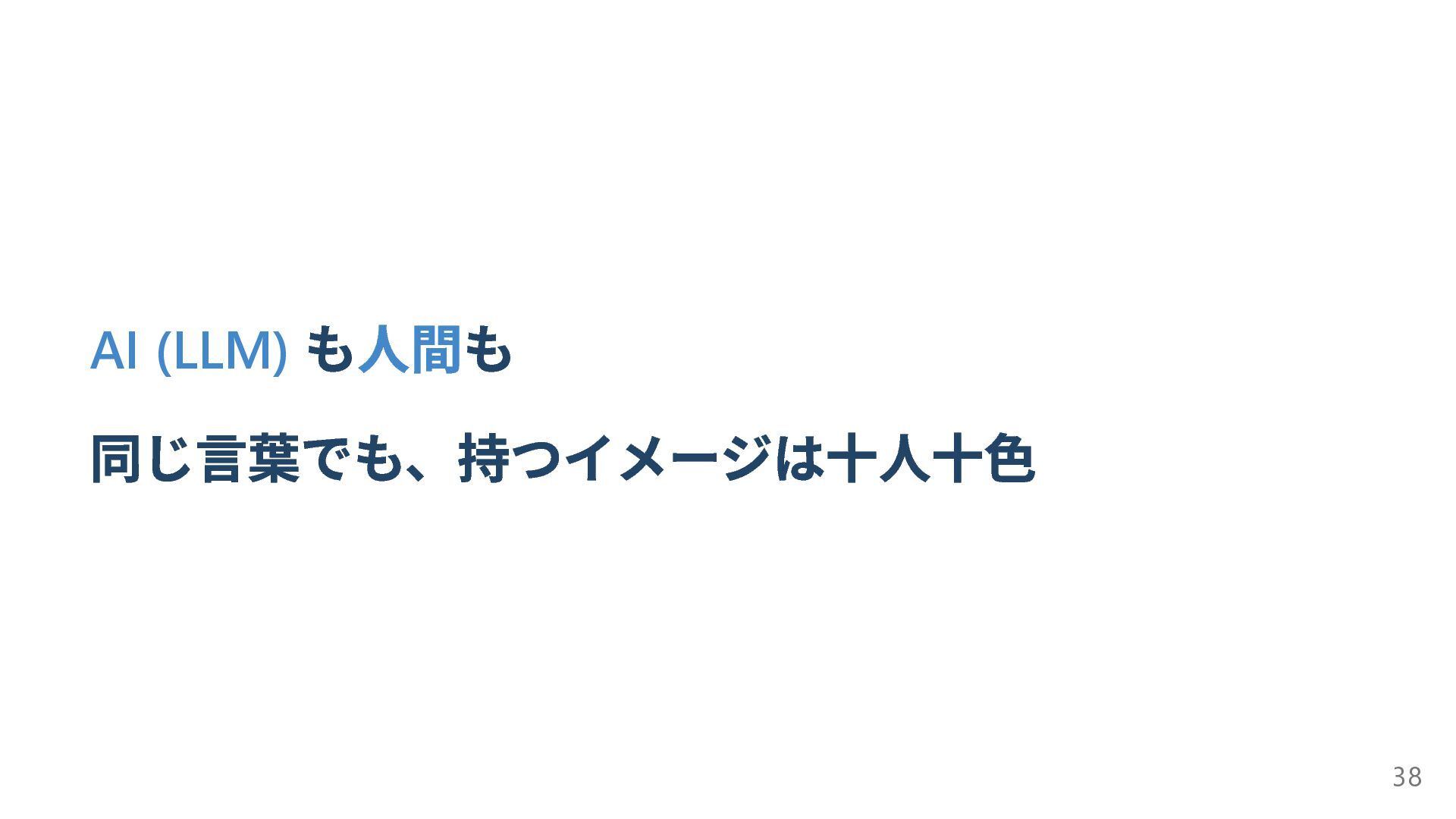 AI (LLM) も人間も 同じ言葉でも、持つイメージは十人十色 38