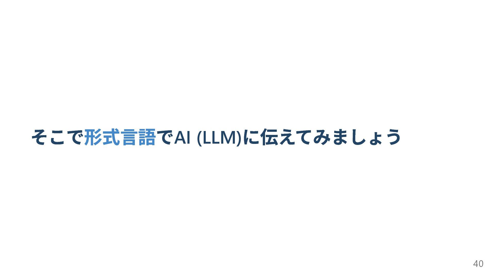 そこで形式言語でAI (LLM) に伝えてみましょう 40