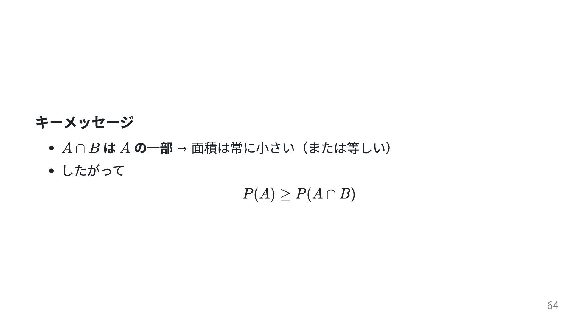 キーメッセージ は の一部 → 面積は常に小さい(または等しい) したがって 64