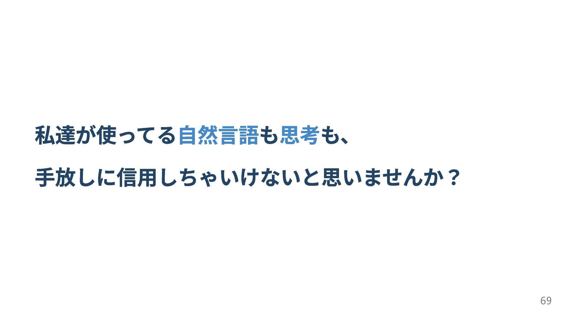 私達が使ってる自然言語も思考も、 手放しに信用しちゃいけないと思いませんか? 69