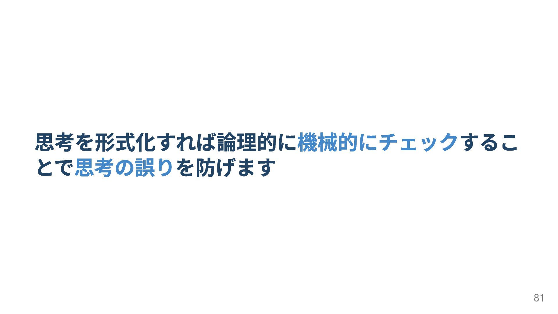 思考を形式化すれば論理的に機械的にチェックするこ とで思考の誤りを防げます 81