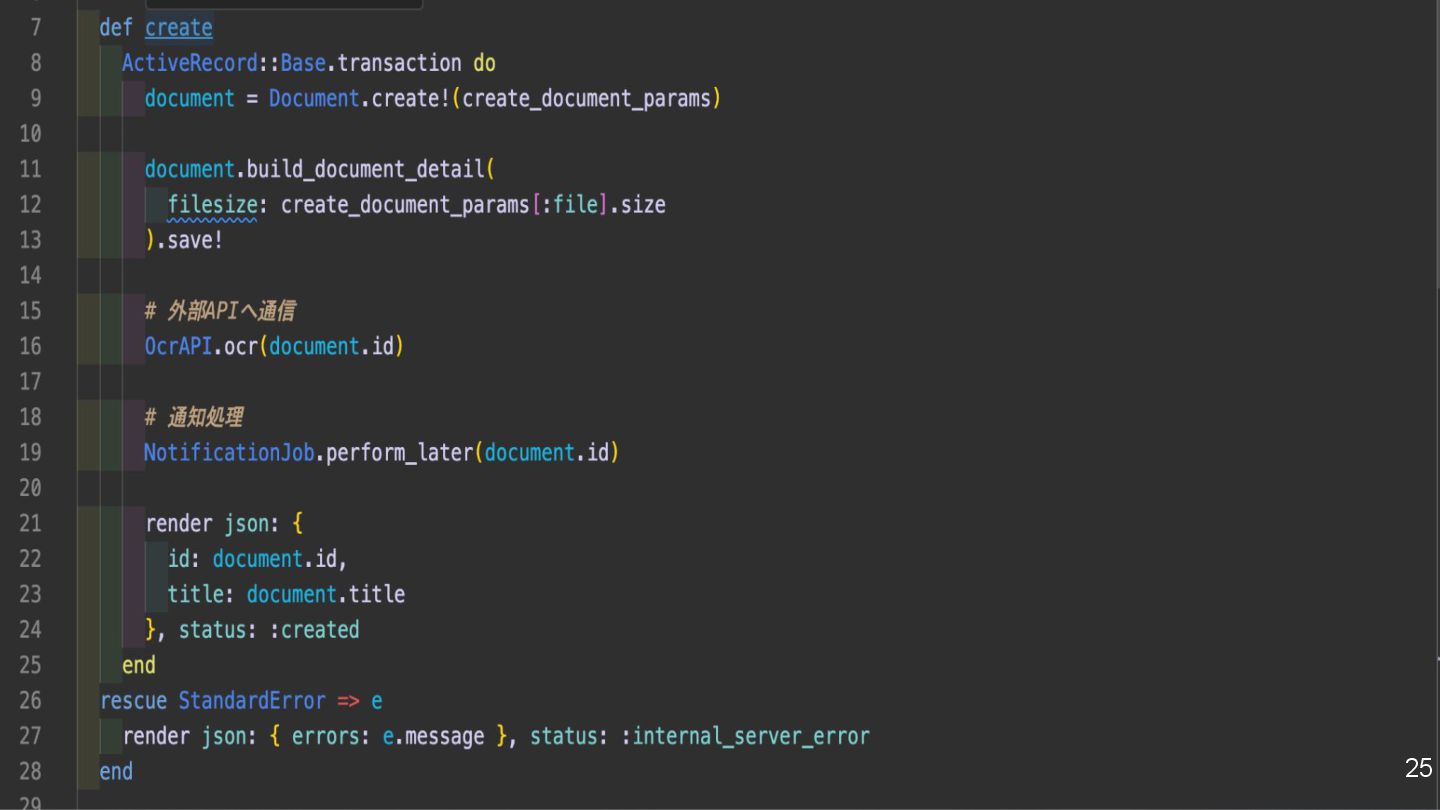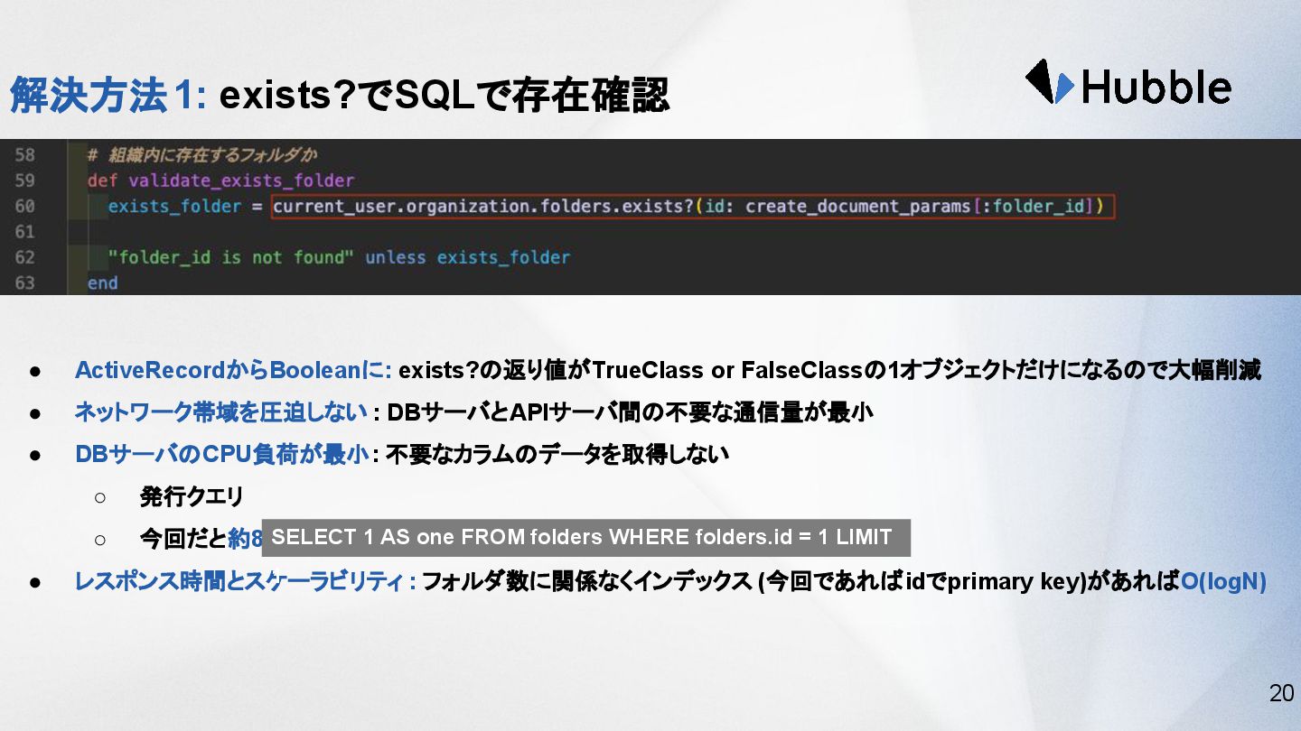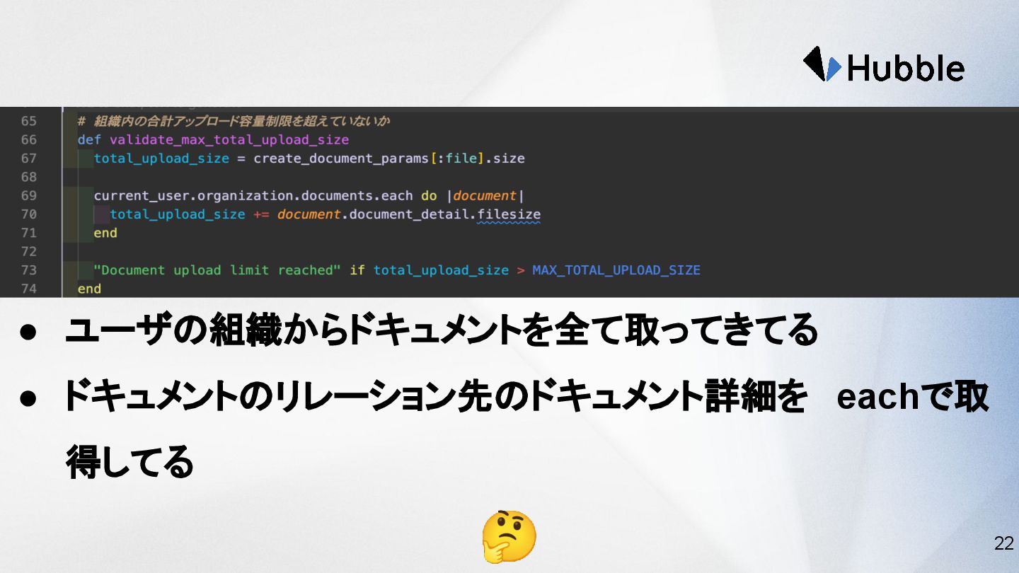 documents取得 + 各documentごと のdocument_detail取得) • コネクションプール枯渇 : 大量の小さなクエリでデータベース接続が長時間占有され、他のリクエストが接続待ちになる可能性 (Railsは1リクエスト、 1コネクション ) • DBサーバCPU負荷: 同じような小さなクエリを大量に処理する非効率性と クエリパーシング の繰り返し ◦ クエリパーシング (字句解析)はSQL実行のおよそ 40%を占める ◦ 同一クエリでもパラメータが違えば別クエリとして扱われる ◦ キャッシュが効かずパーシングが繰り返される • ラウンドトリップ回数増大 : アプリケーションサーバと DBサーバ間の通信が N回発生し、ネットワークレイテンシが N倍に累積(一般に 同一リージョン通信は 0.5ms - 2.0ms、クエリ実行自体は 0.1ms - 2.0ms) 23