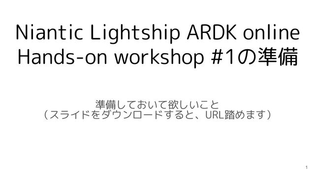 Niantic Lightship ARDK online Hands-on workshop #1の準備 準備しておいて欲しいこと (スライドをダウンロードすると、URL踏めます) 1