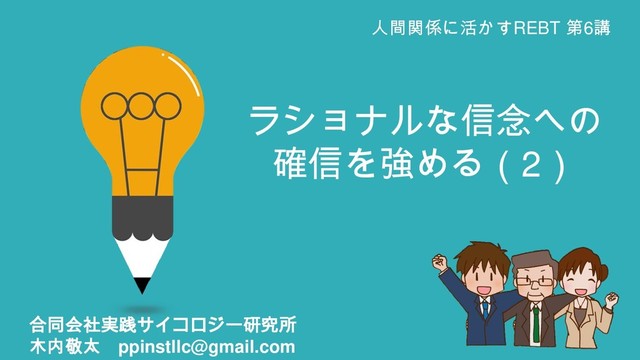 ソーシャルスキルを高め、良好な人間関係を築き、維持することを目的とした全8回の講座の第6回。アルバート・エリスの認知行動療法、REBT(論理療法、ラショナル・カウンセリング)の理論に基づき、コミュニケーションスキルの促進を目指す。