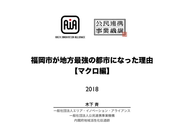 Ԭࢢ͕ํ࠷ڧͷࢢʹͳͬͨཧ༝ ʲϚΫϩฤʳ 2018 Լ ੪ Ұൠࣾஂ๏ਓΤϦΞɾΠϊϕʔγϣϯɾΞϥΠΞϯε Ұൠࣾஂ๏ਓެຽ࿈ܞࣄۀػߏ ֳҬ׆ੑԽಓࢣ