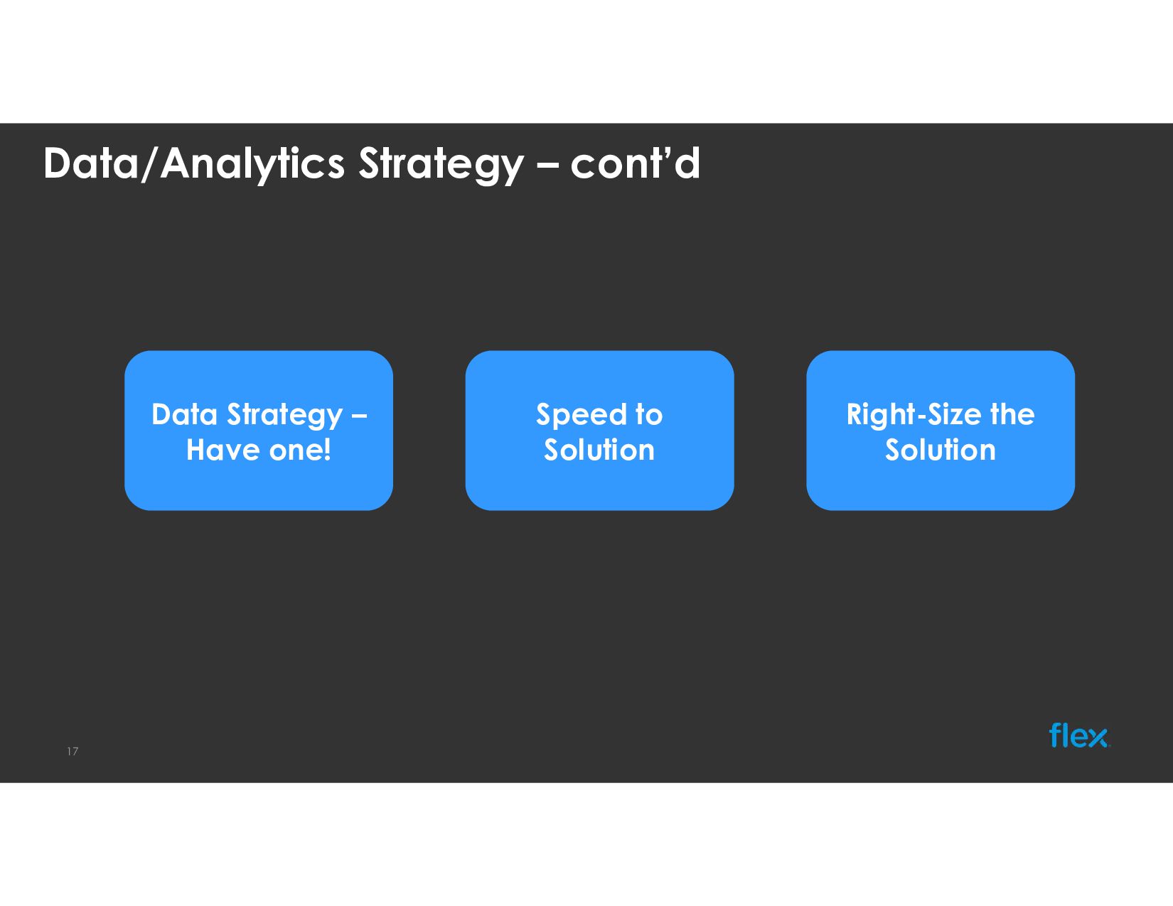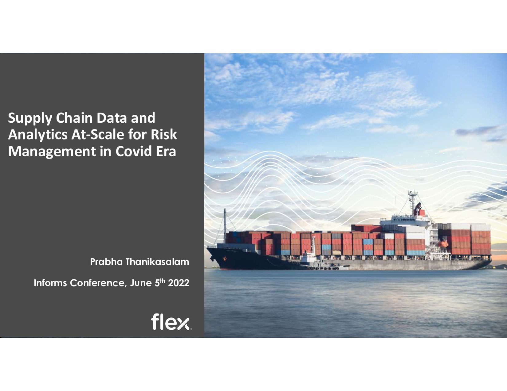 and Supply Chain Solutions, Flex https://www.linkedin.com/in/prabhakart • Student Informs Chapter at Virginia Tech • MS in Operations Research/Industrial Engineering • 18+ years of experience in the Supply Chain field • 15+ years @ Flex. Prior experiences in the Auto Industry, Fast Food Supply Chains • Roles • Optimization solutions development using AMPL, GAMS – Prior to Flex • SC Network Design @ Flex • Data Science/Analytics with R/Python starting in 2015 • Leading the Data and Analytics function for SC org for 4+ years