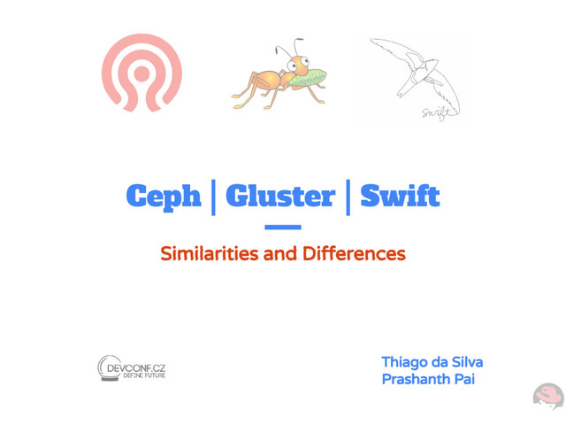Ceph, Gluster and OpenStack Swift are among the most popular and widely used open source distributed storage solutions deployed on the cloud today. This talk aims to briefly introduce the audience to these projects and covers the similarities and differences in them without debating on which is better. All three projects often have to solve the same set of problems involved in distribution, replication, availability, access methods and data consistency.