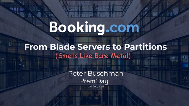 Setting Expectations From Blade Servers to Partitions • Bare Metal at Booking • Problem: Blade Server EOL • Solution: Server Partitions Conclusion • Lessons Learned • Call to Action • Q&A