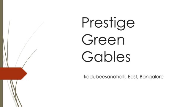 ‘Prestige Green Gables’ stands as a precedent for delineating a housing layout with its cognition and right discernment to deliver an unrivalled and unparalleled residential experience to its endeared occupants. This newfangled residential community by Prestige Groups is prospected to be ventured soon in elite locales of Kadubeesanahalli of South Bangalore close to all essential social and physical infrastructural frameworks.